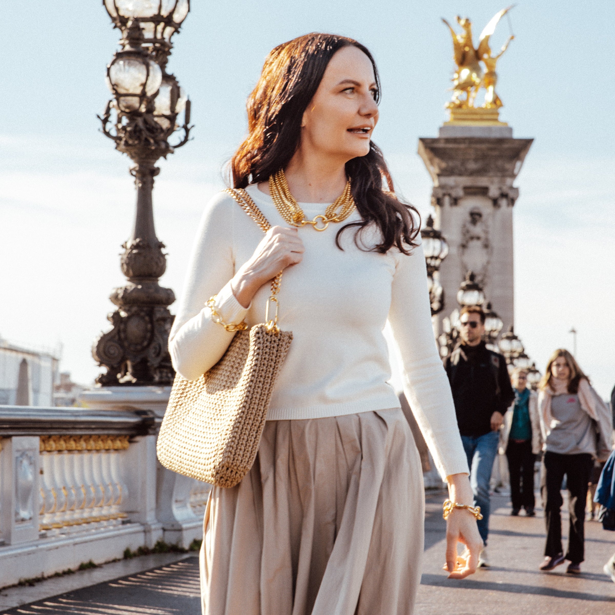 Bolsa em Crochet, estruturada, alça em corrente abs 50cm. Medida 36cmx30cmx10cm. Peso 1,3kg. Acompanha caixa para presente. Pode haver variação de tamanho até 3cm.