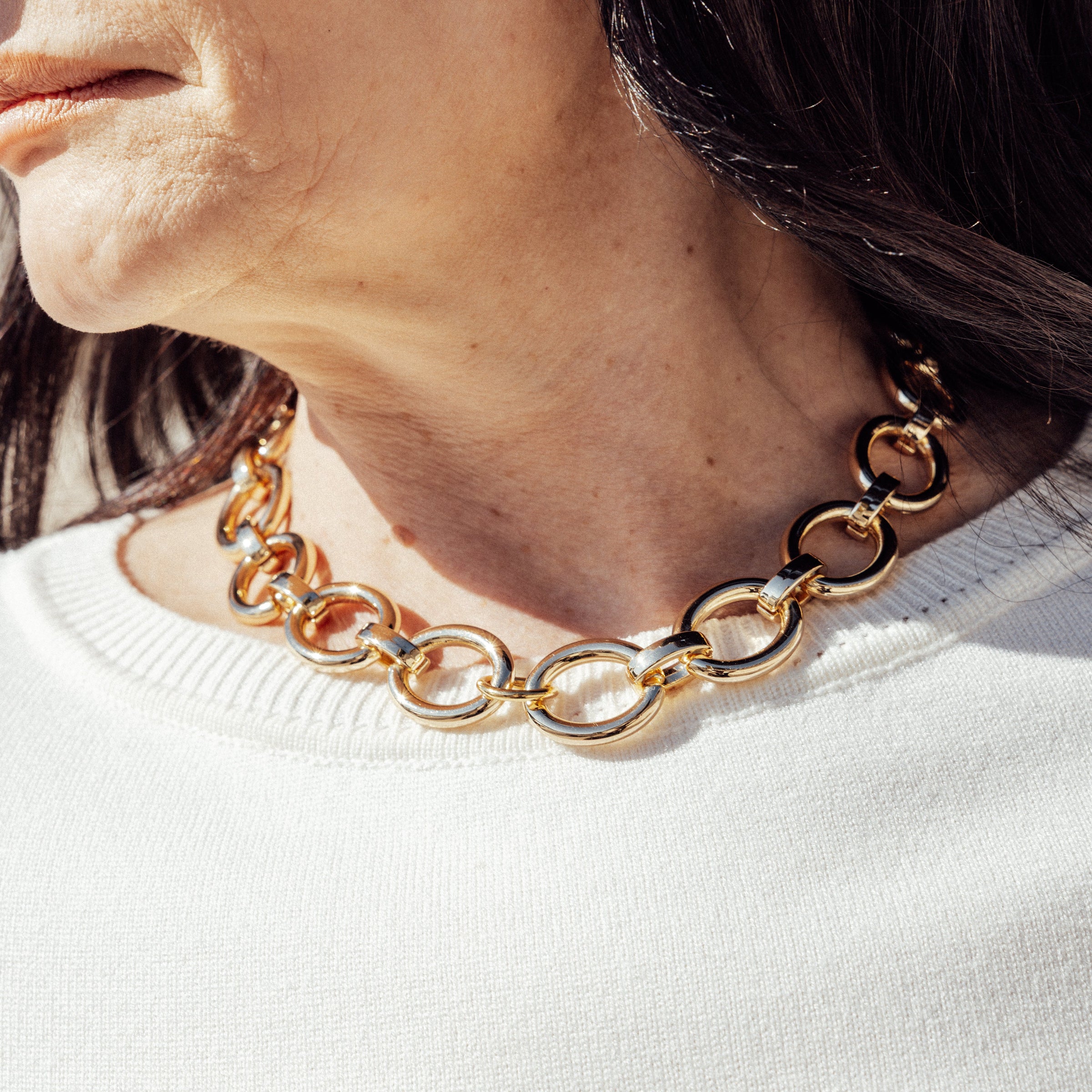Colar em metal premium, fechamento em mosquete ajustável. Medida 53cm.