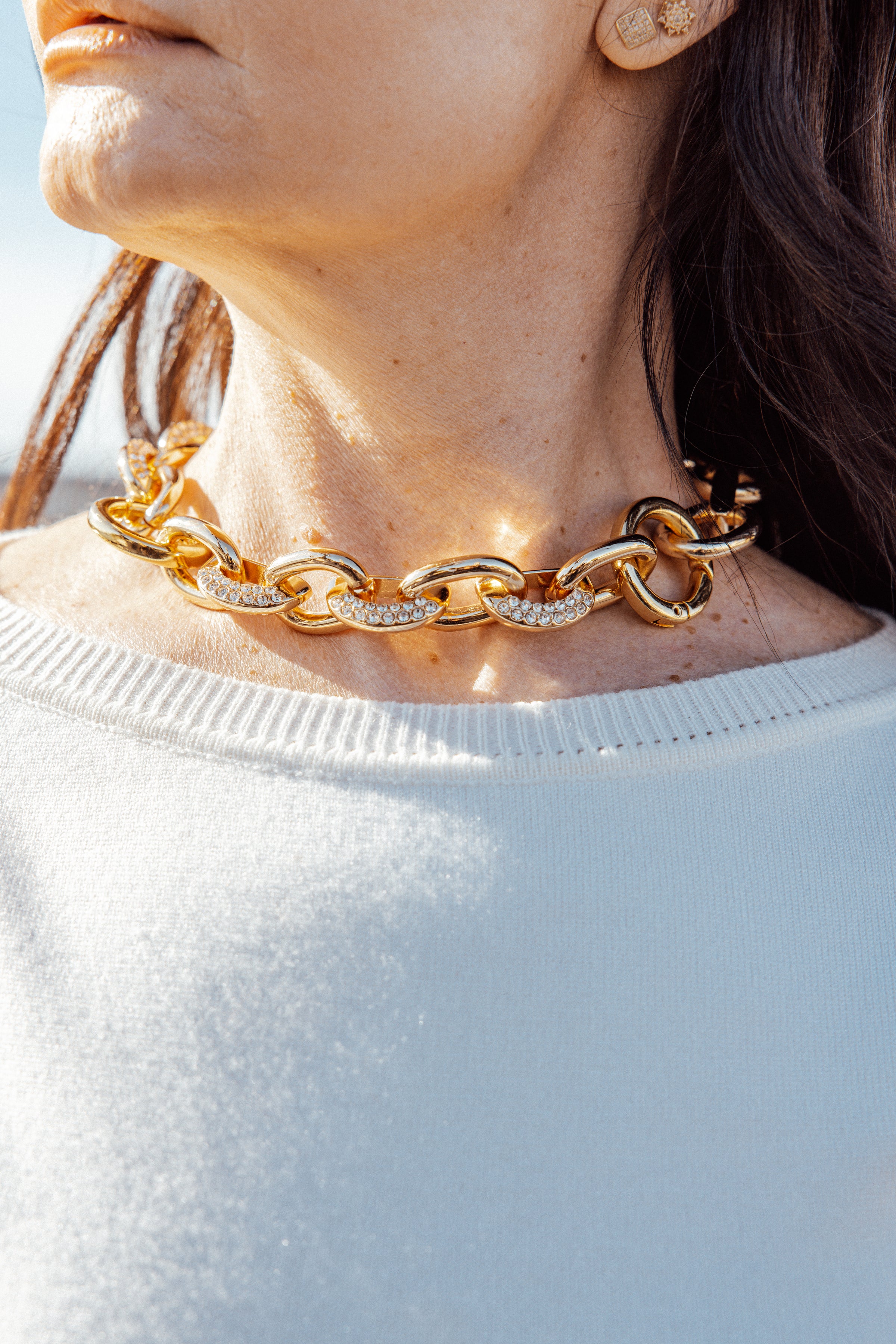 Colar dourado em metal premium com strass. Fechamento mosquete. Medida 45cm.